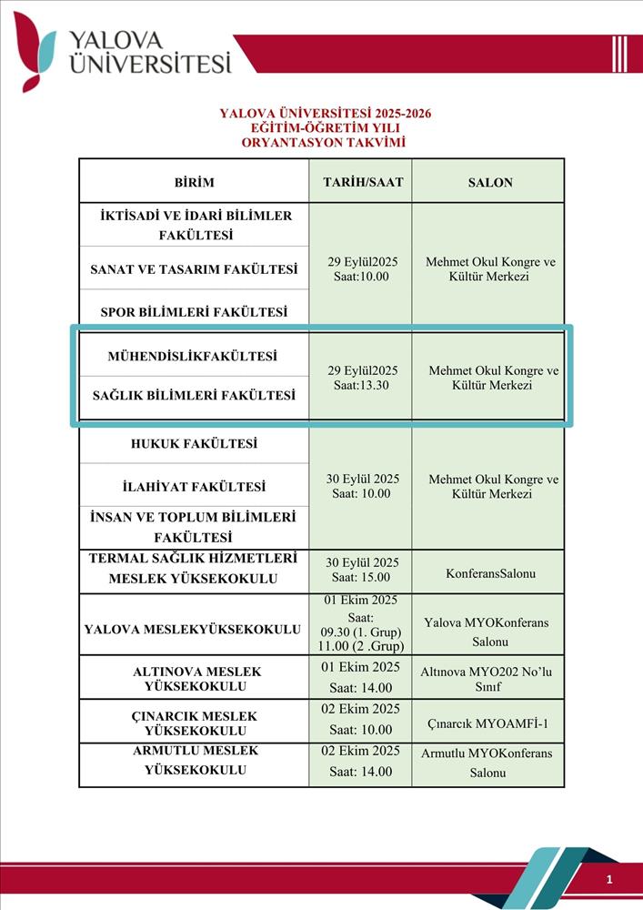 Üniversitemize adapte olmak ve akademik hayata uyum sağlamak amacıyla 29 Eylül 2025 tarihinde saat 13.30'da Mehmet Okul Kongre Merkezi'nde oryantasyon etkinliği düzenlenecektir. Yeni kayıt yaptıran öğrencilerimiz davetlidir.